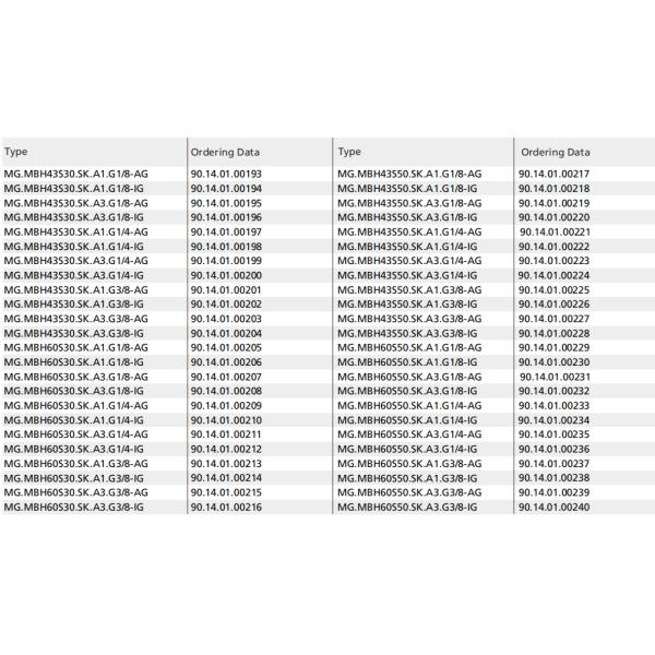 | Type | Vertical lifting force [N] | Parallel lifting force [N] | ||